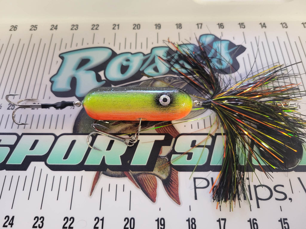 Check out this single blade bucktail, It rides high in the water column with its floating body. These have been a solid fish catcher on area rivers and flowages so when we heard that Babe was going to stop making them we made a deal with him to produce a limited number just for Ross's!