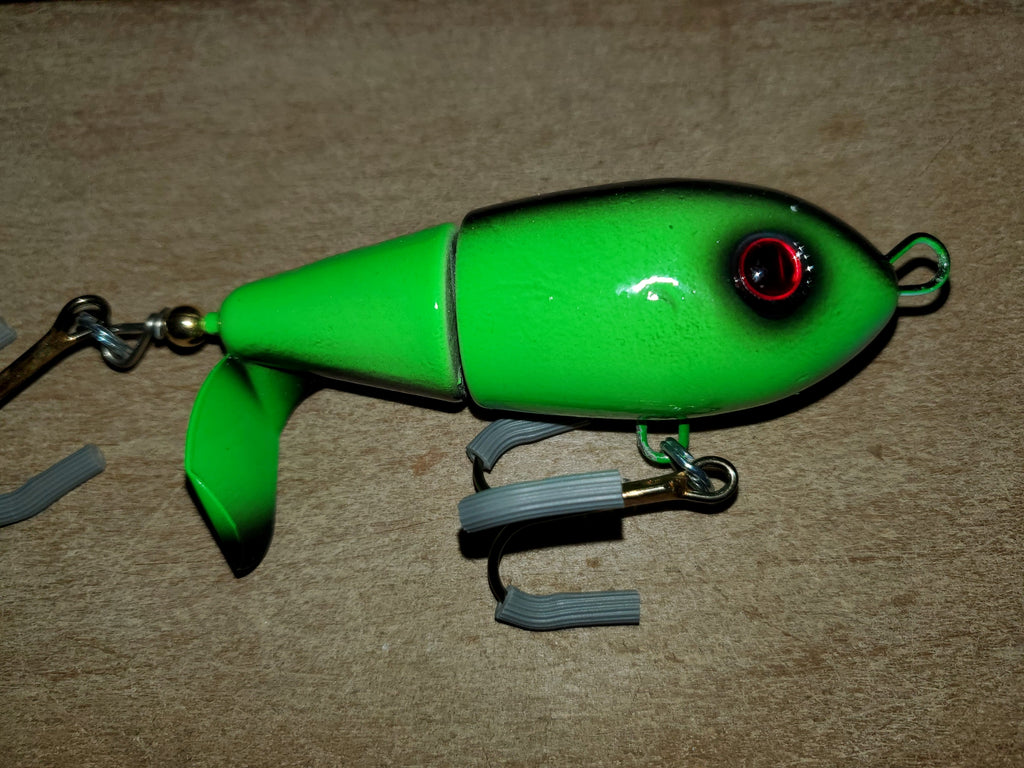 All of Lake X's topwater sound and action in a smaller package that is great for multi species trips. From Bass to Musky they all eat it. Built tough to handle toothy Musky or to pound Bass after Bass. Solid construction won't take on water.